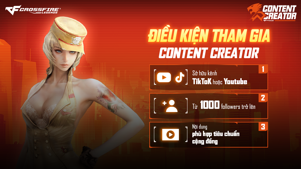 Đam mê sáng tạo nội dung về Crossfire: Legends thôi chưa đủ, để trở thành Creator chính thức bạn cần có kênh TikTok/YouTube đạt từ 1,000 followers trở lên