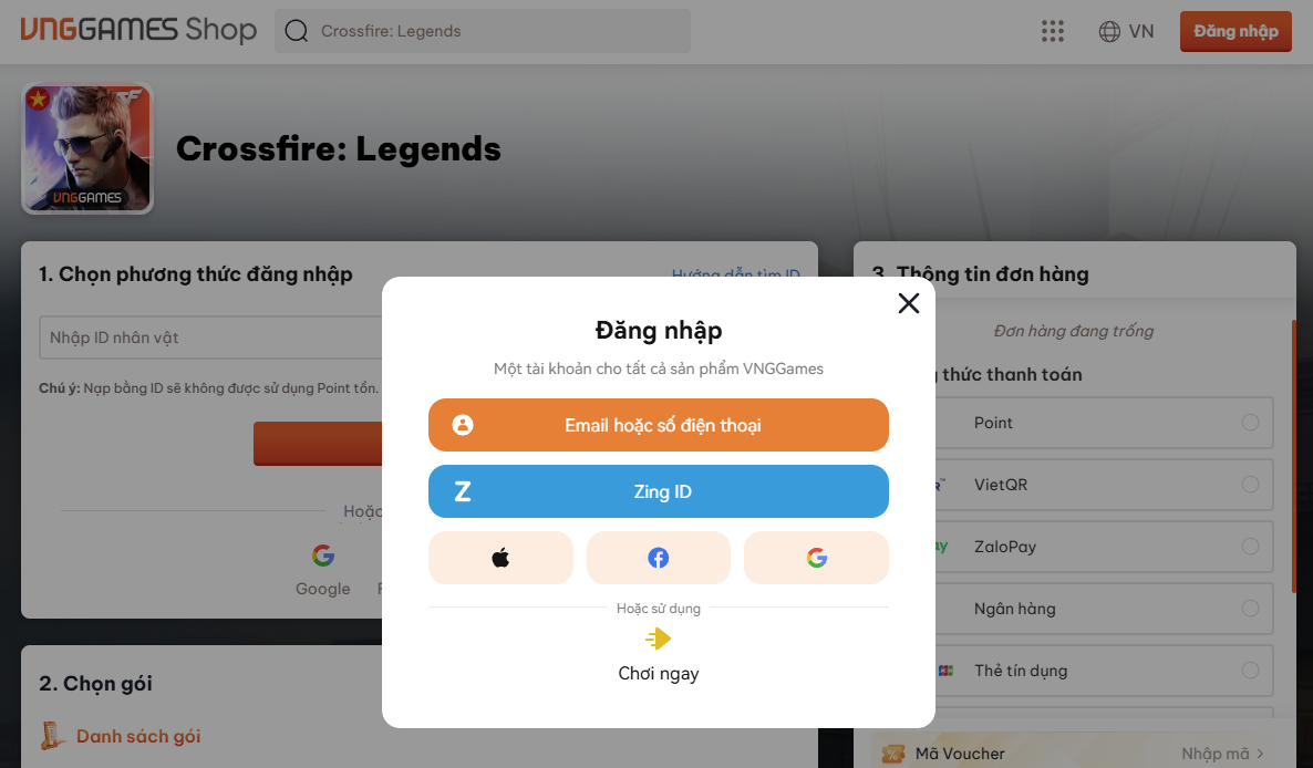 1. Nhập Voucher tại Web: Mã giảm giá phải được nhập trực tiếp tại Trang Nạp Thẻ của game.