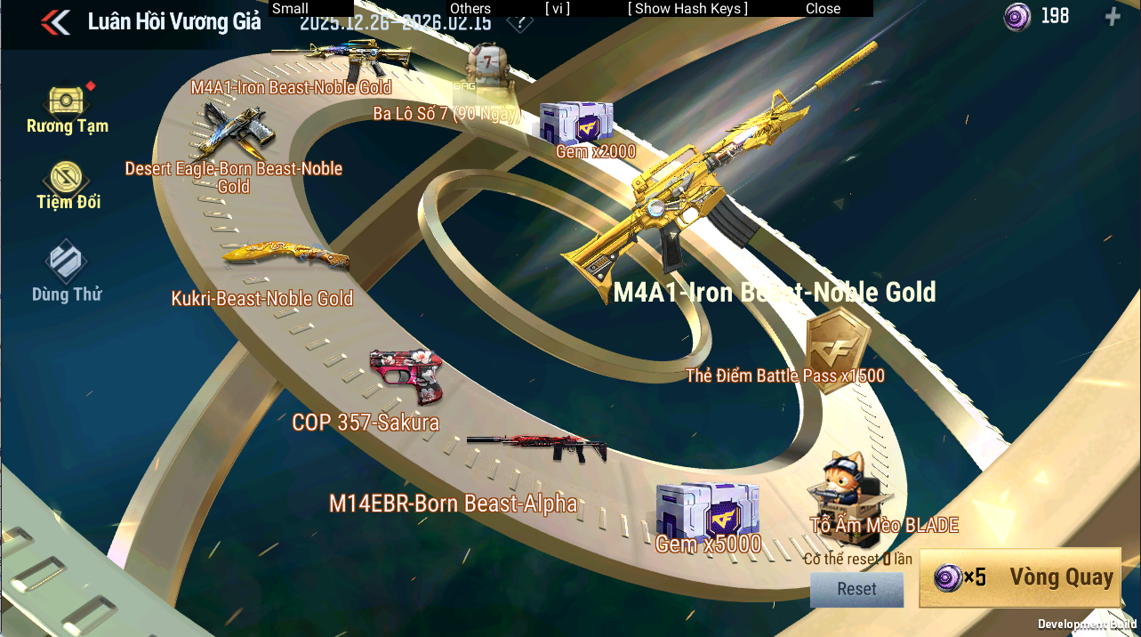 ♦ Phần thưởng chính: M4A1-Iron Beast-Noble Gold, Desert Eagle-Born Beast-Noble Gold, Kukri-Beast-Noble Gold